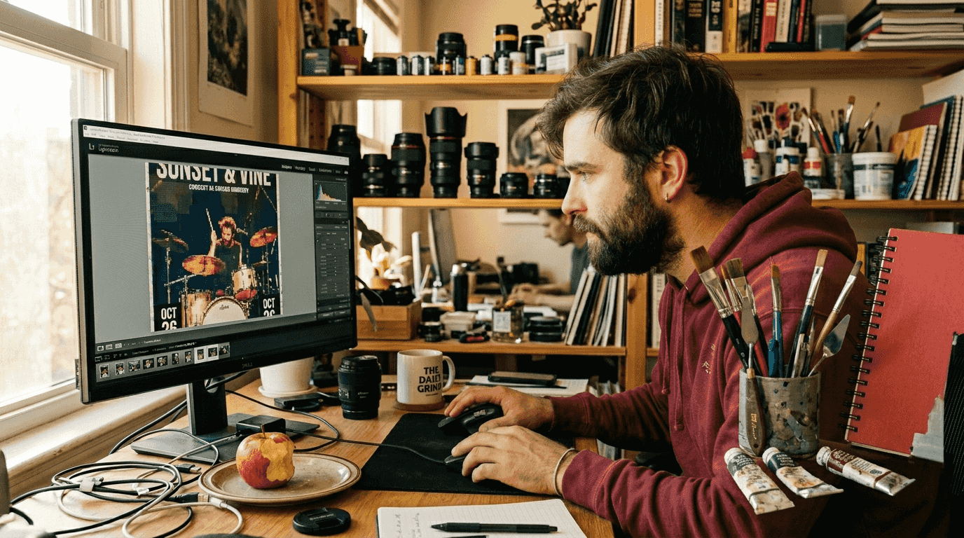 The speed difference becomes obvious when you're working on multiple posters or experimenting with different styles. Traditional printing requires you to manually edit each variation in photo editing software before uploading separate files. AI generation lets you input different prompts and instantly preview how each style affects your photo. You can test vintage looks, modern minimalism, bold graphics, and subtle enhancements within minutes, then select your favorites for printing.